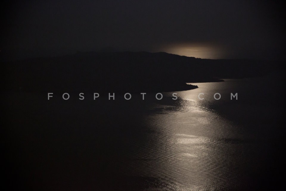 Moonlight over Aegean Sea, Santorini Isl…
