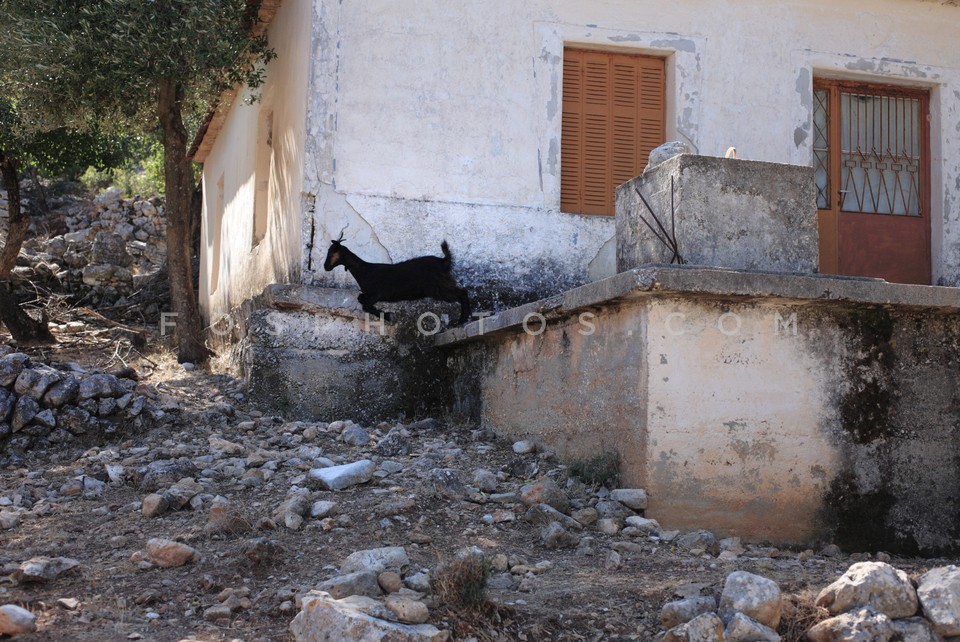 Goat outside abandoned house in Agia Sof…