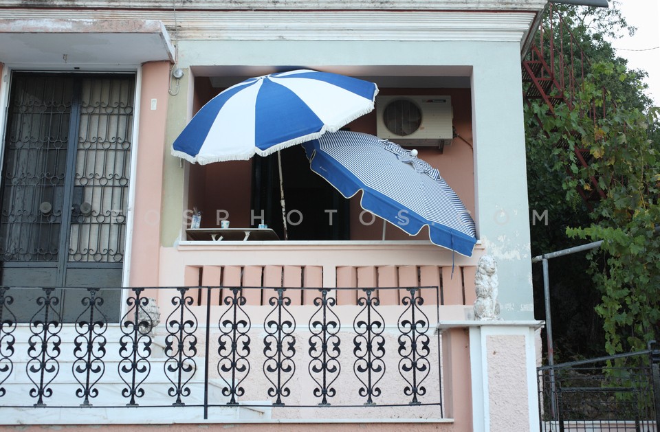 Beach umbrellas at balcony, Neochori at …