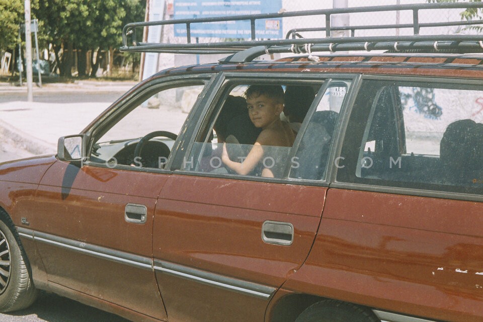 A child in the car, island of Andros, Cy…
