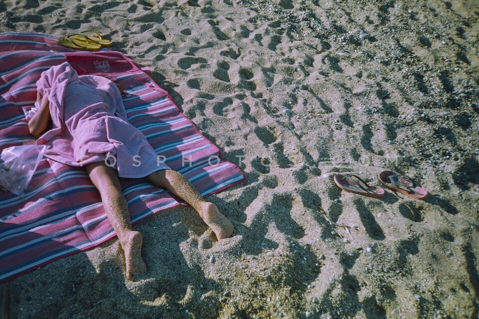 Woman covered with a towel on the beach,…
