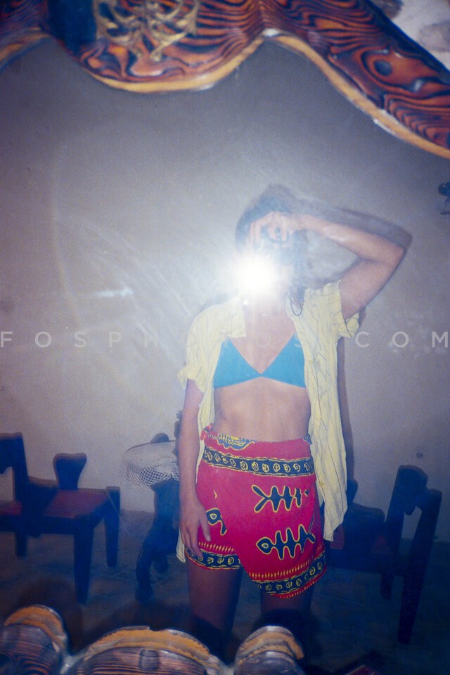 Woman takes a photo of herself in the mi…