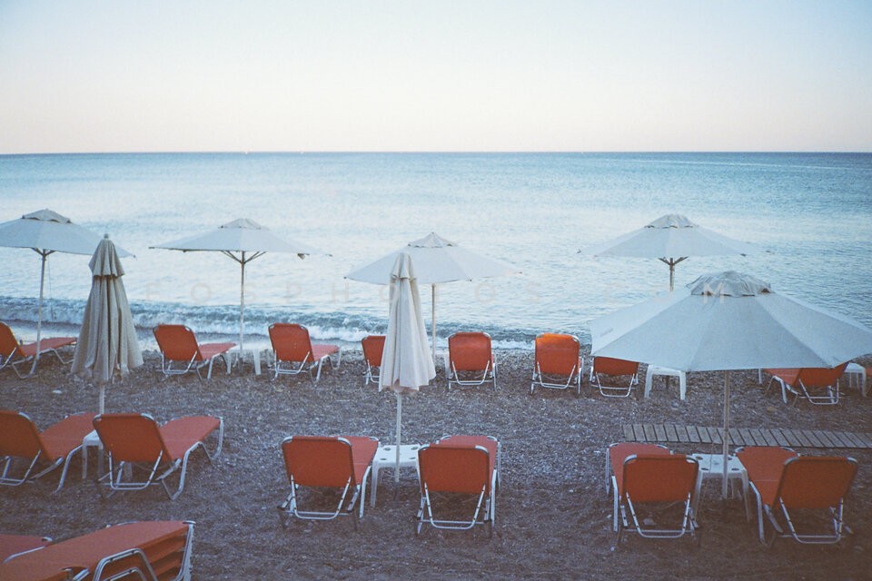 Sunbeds nad umbrellas on the beach, isla…