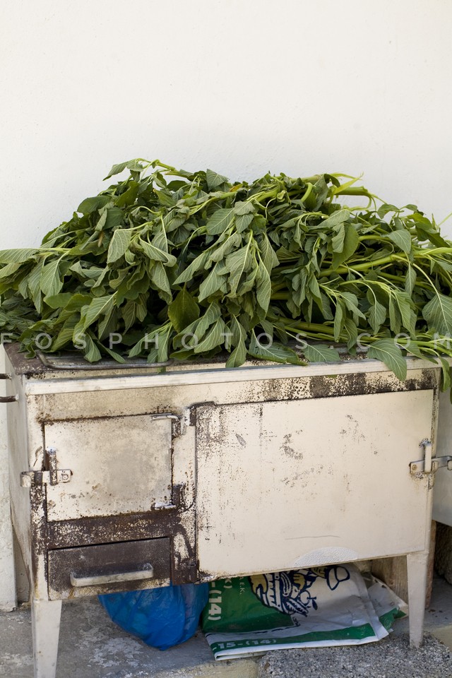 Fresh greens on a table, Crete, Greece, …