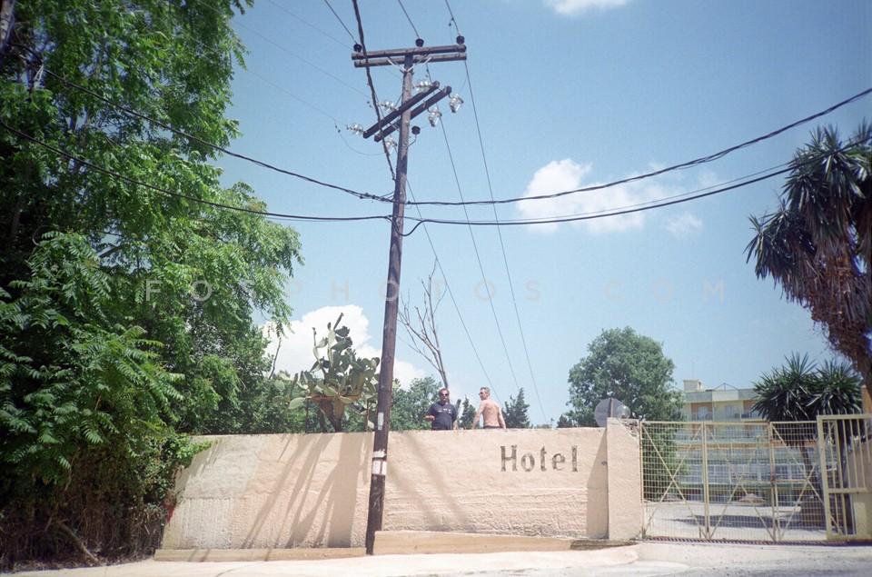 People at hotel gate, Corfu Island, May 2012