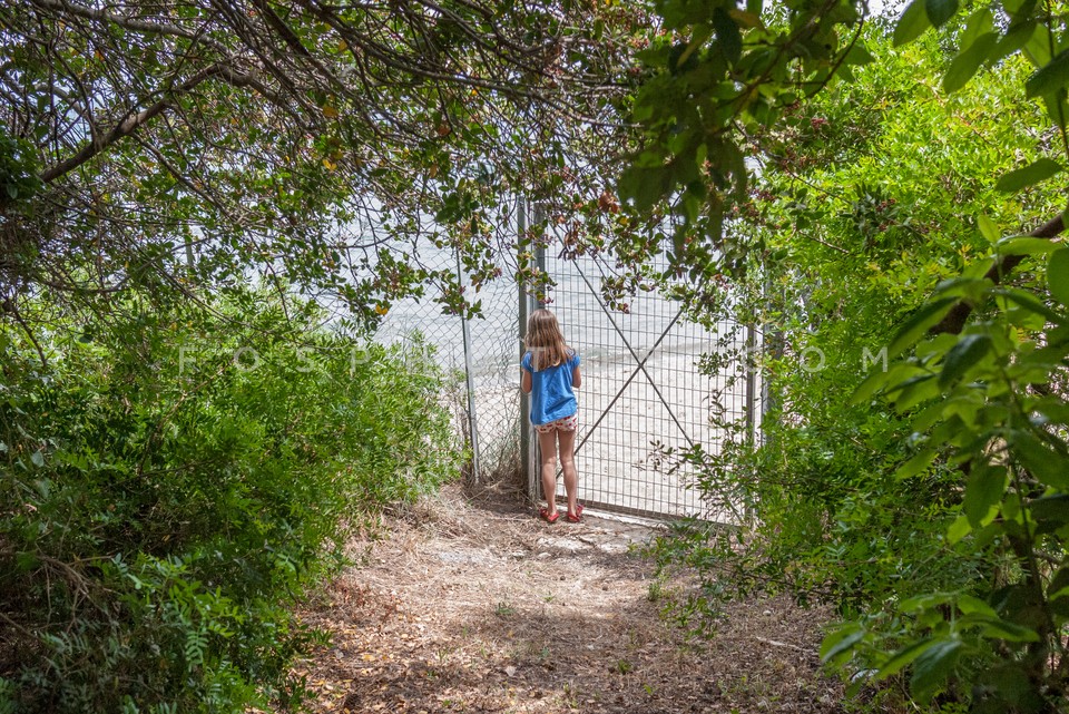 Young girl looking at sea from behind a …