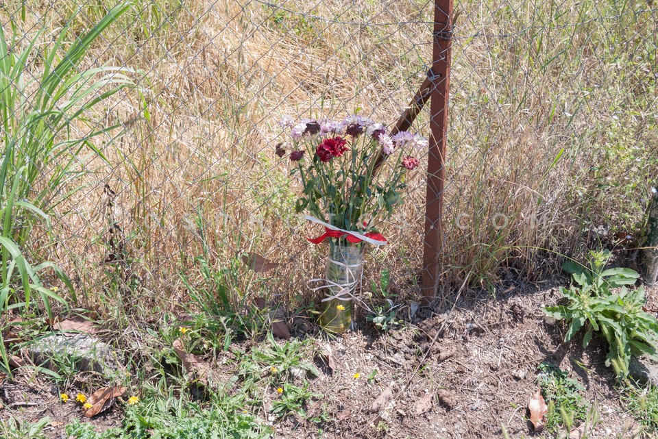 Flowers bouquet against fence, Corfu Isl…