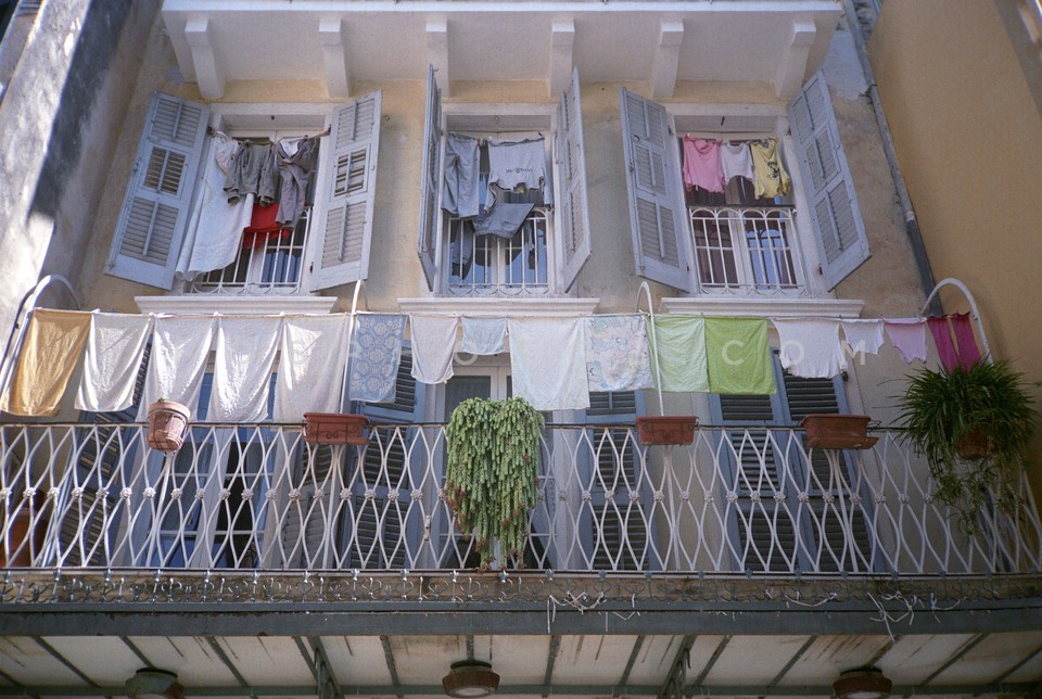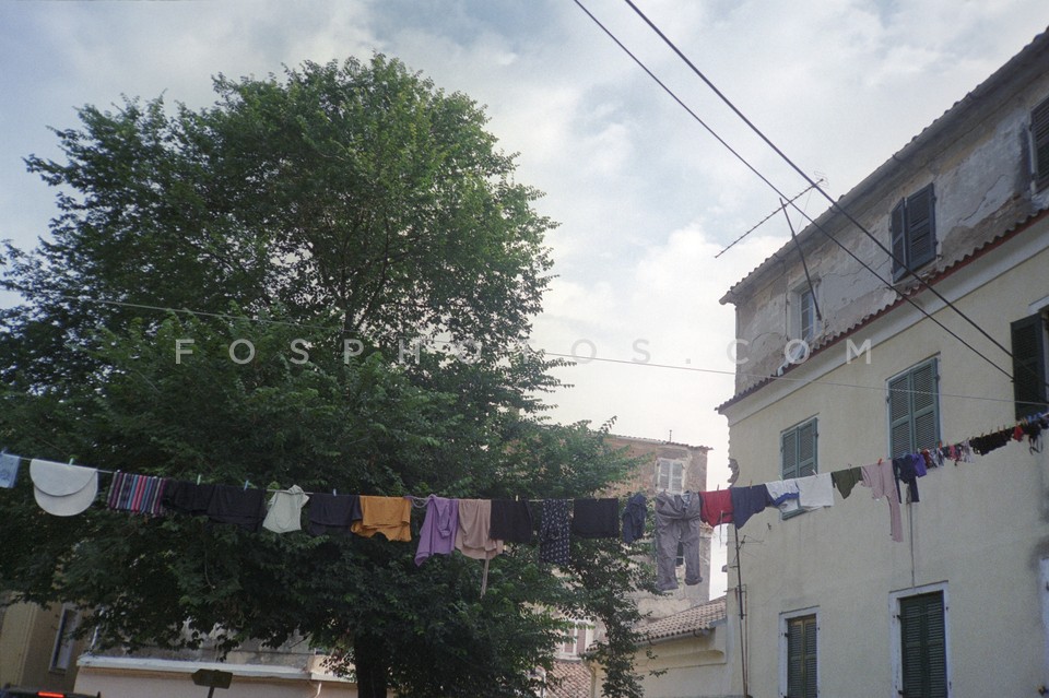 Clothes drying on rope in Corfu city, Co…