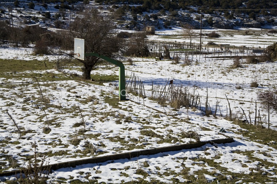Snowed basketball field in the village o…