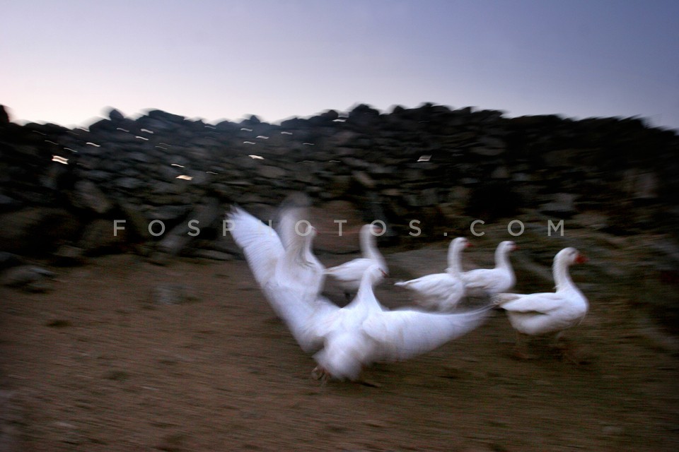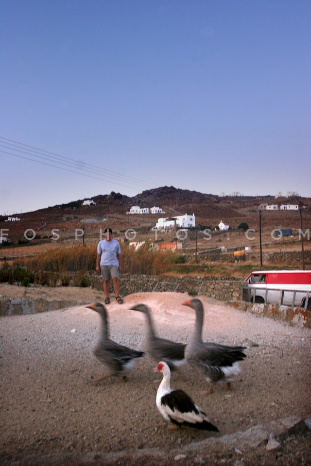 Geese and boy, Island of Mykonos, Greece, 2009