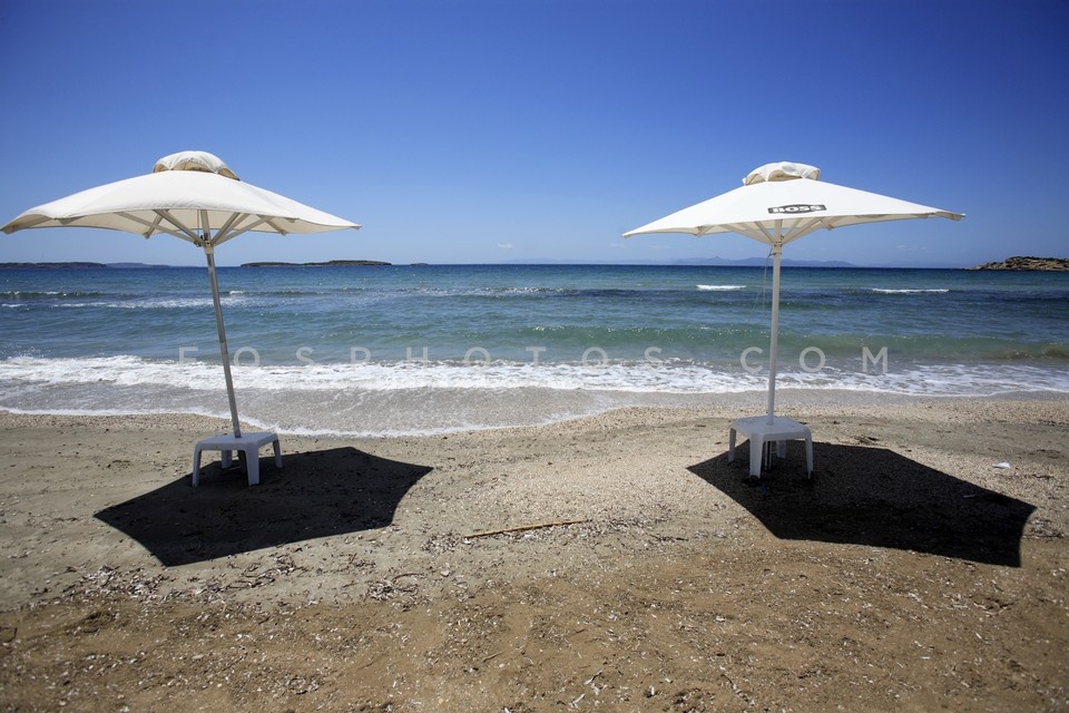 Beach umbrellas in the beach of Voula, A…