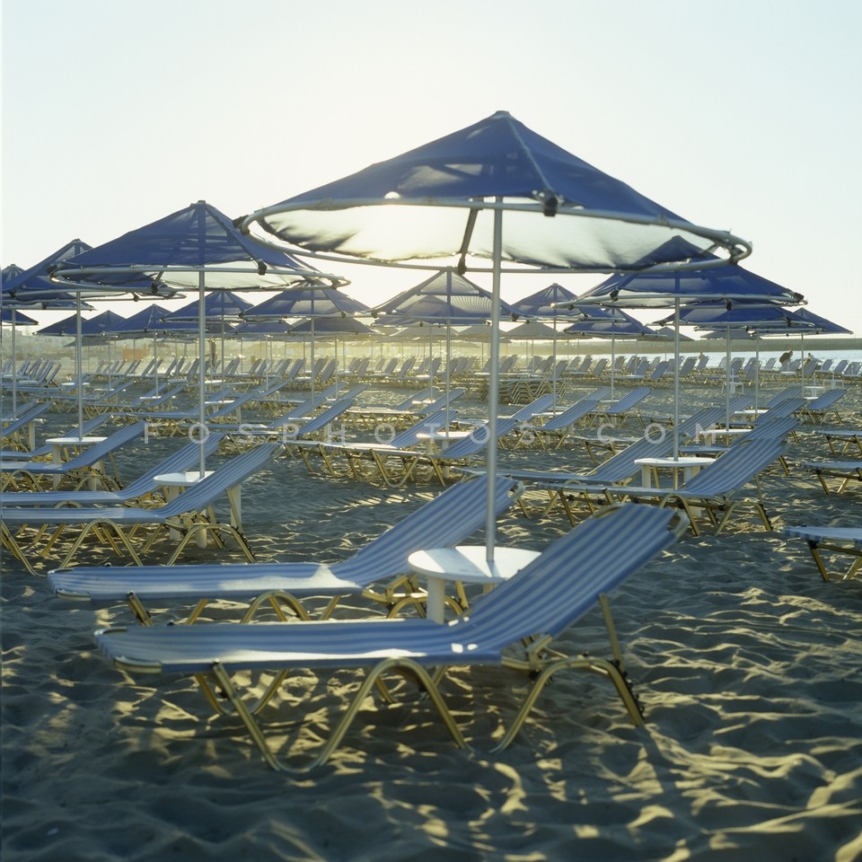 Sunbeds and parasols on a beach in Rethy…