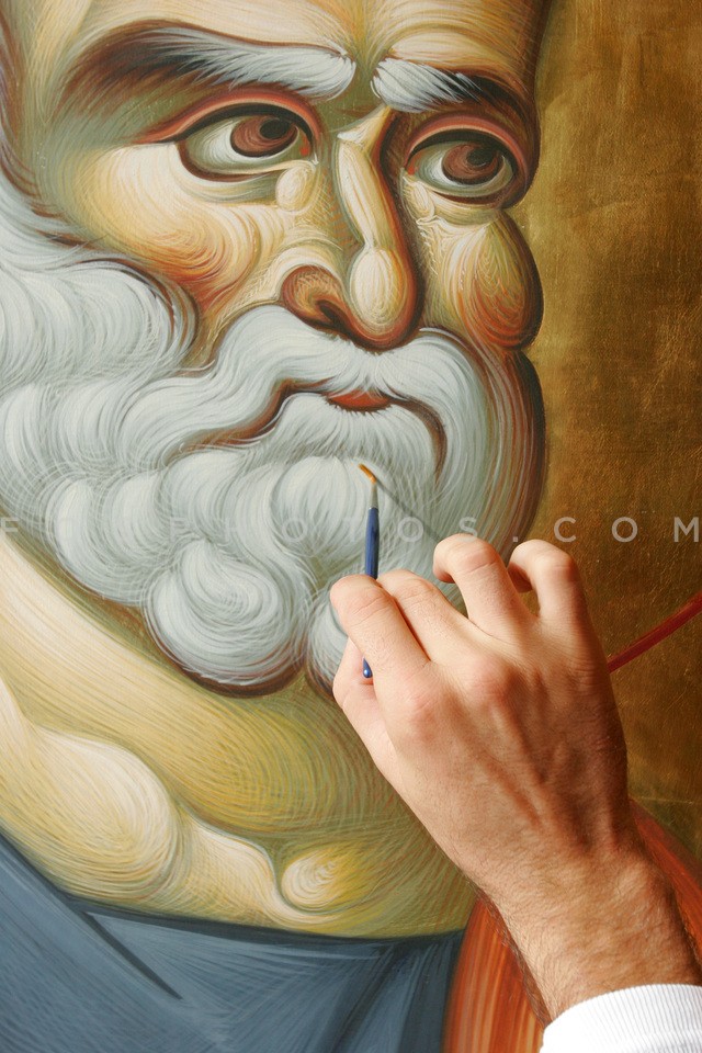 Hand painting a religious icon