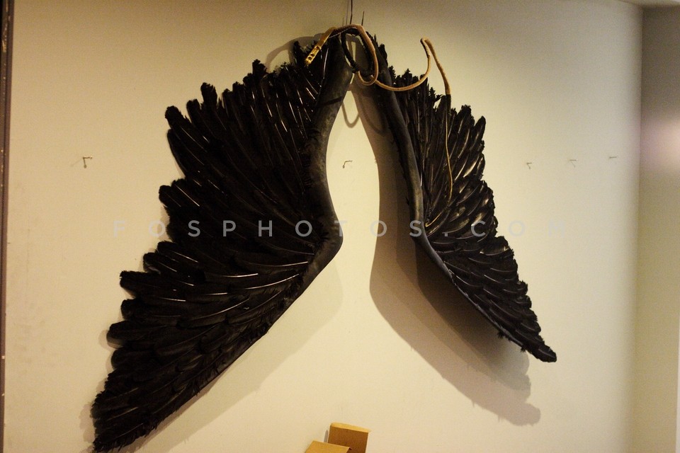 Wings hanging on a wall, backstage in At…