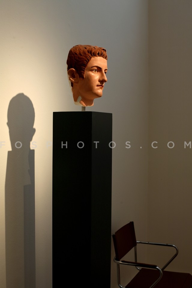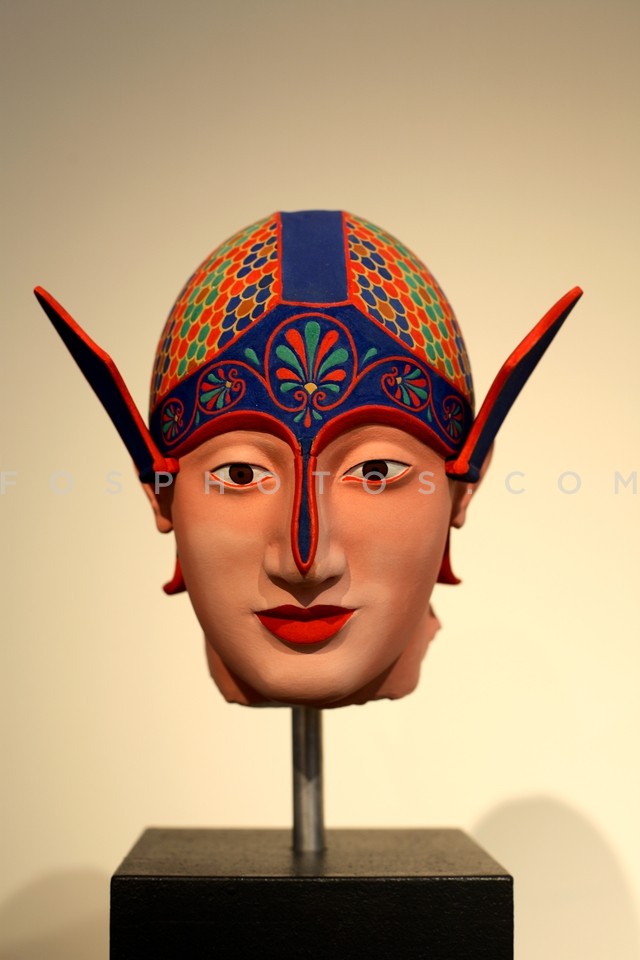 Colored cast of a soldiers head from the…