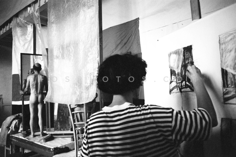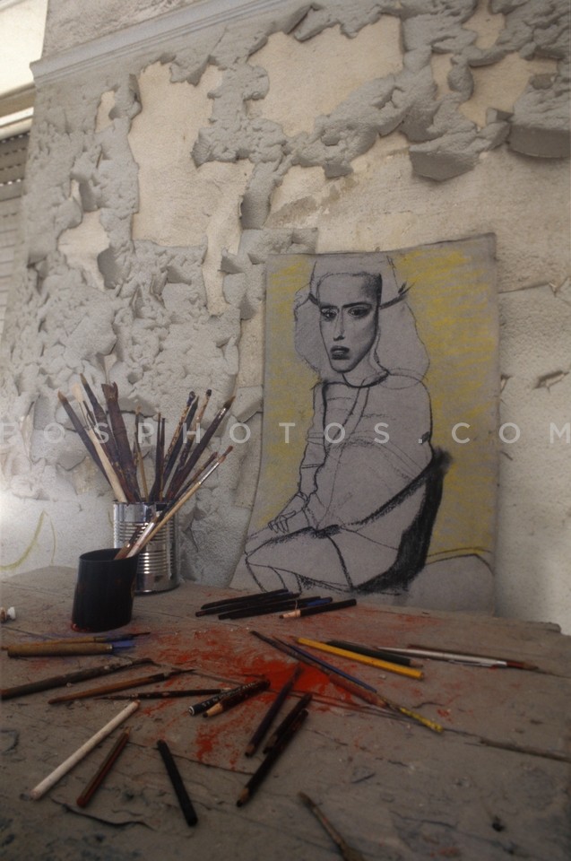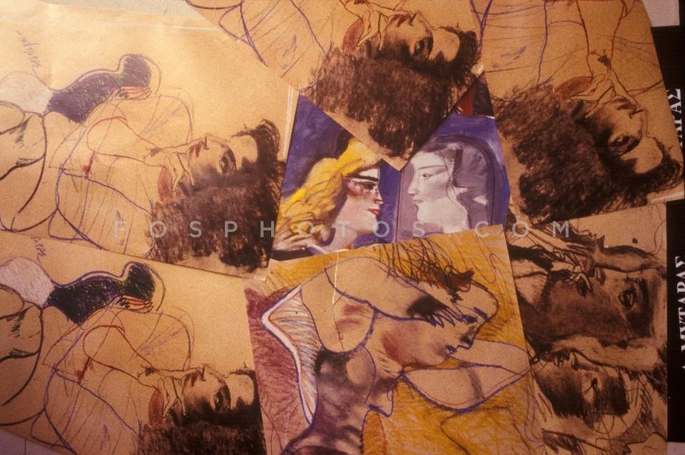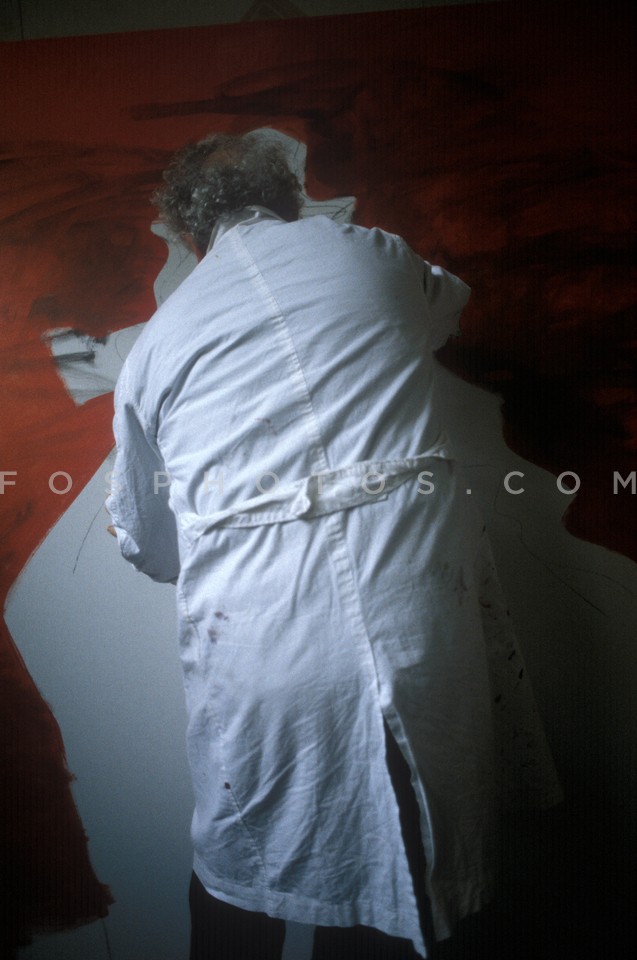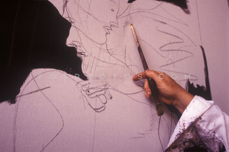 Painter Dimitris Mytaras at work, Athens…