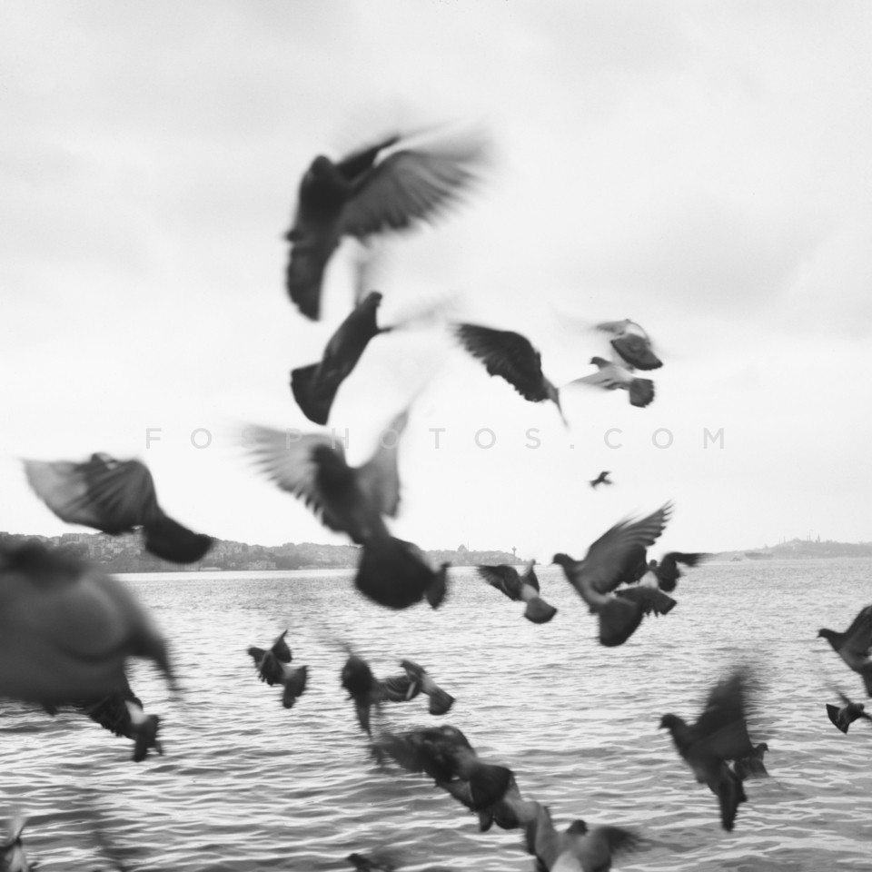 Pigeons flying in the Bosphorus, Istanbu…