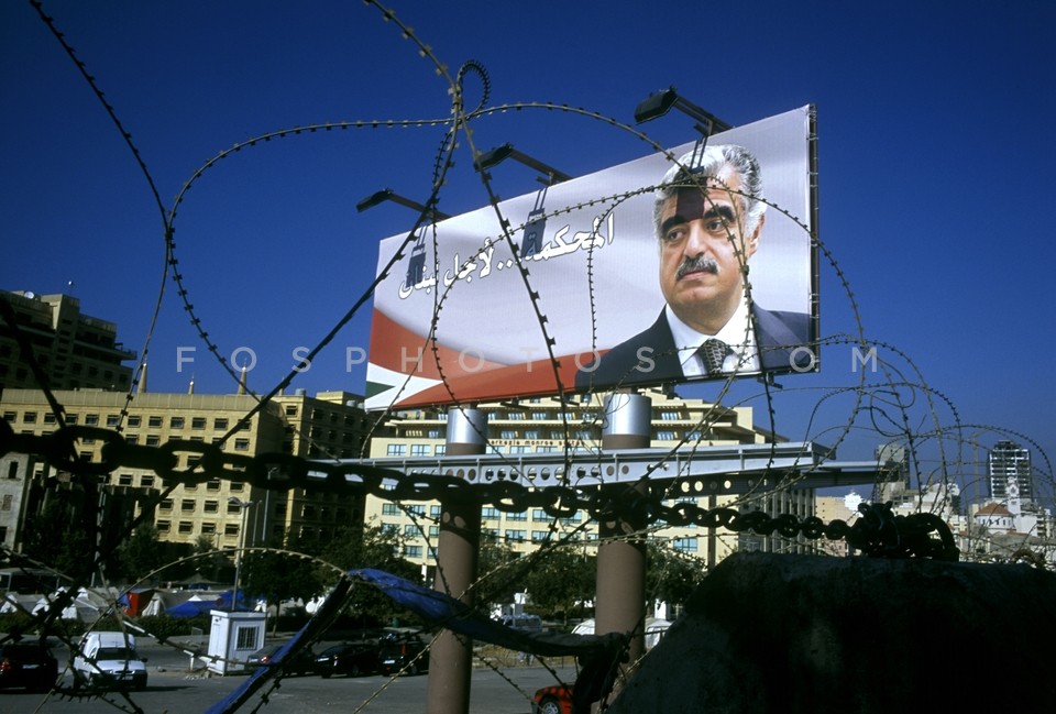 Billboard in Beirut with a photo of Rafi…