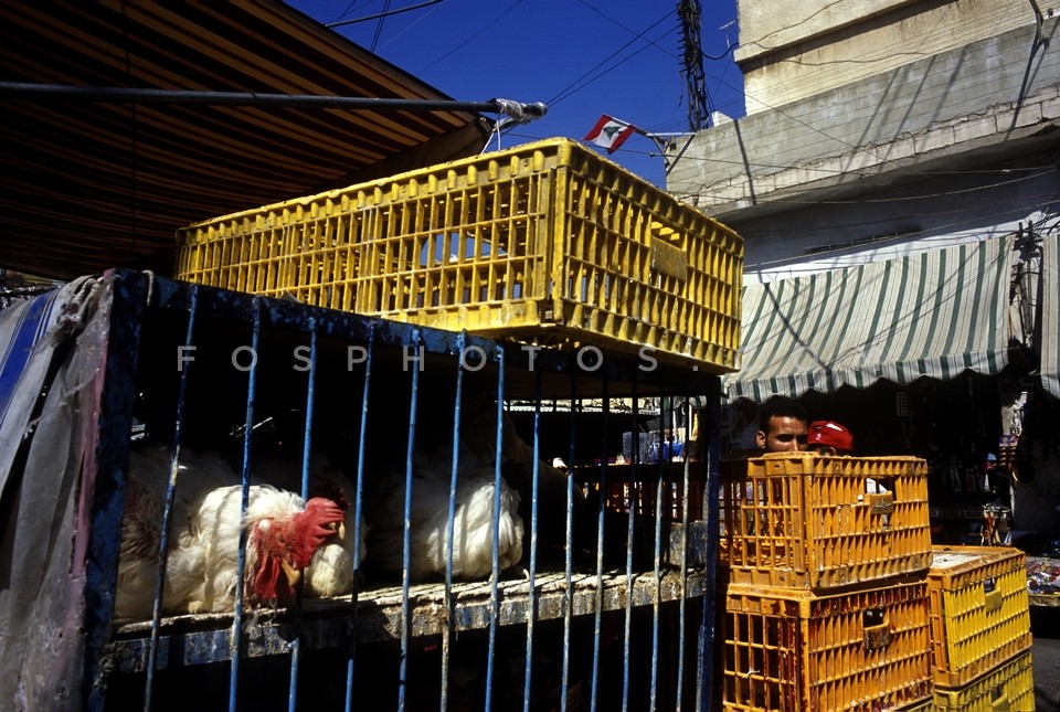 Cages with hens and kocks at Shatila ref…