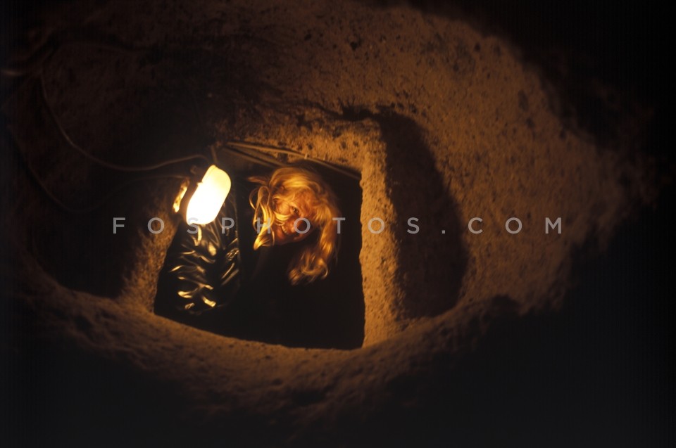 Woman getting out of a cave in Cappadoci…