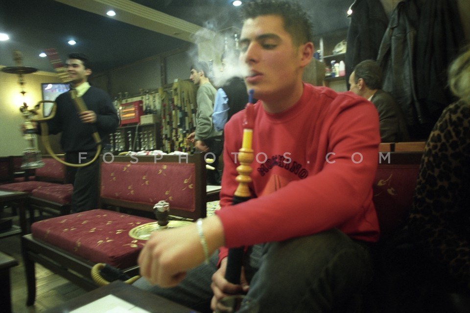 Men smoking narghile at an Istanbul cafe…